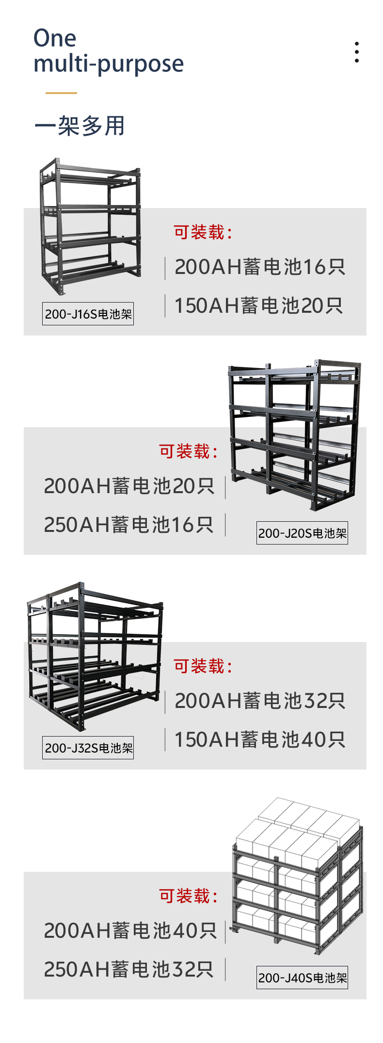 • 产品分类:200AH电池架